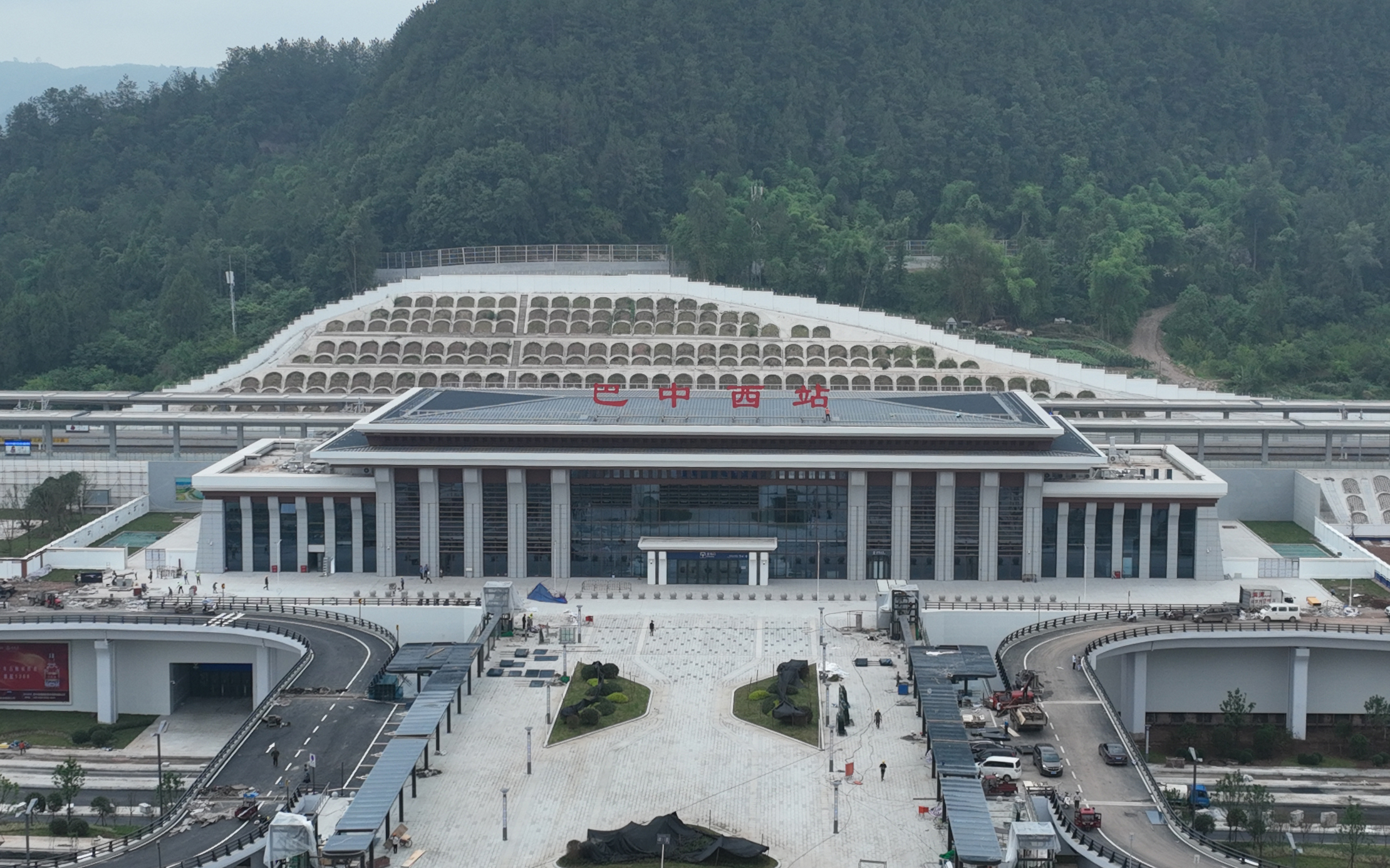 汉巴南高铁巴中西站片区基础设施配套建设项目(一期)位于巴中市恩阳区,总建筑面积约6万平方米,包含站前广场及枢纽平台(GTC)、恩阳城区三岔沟至青包梁道路工程和交通枢纽长途客运站及停车场。其中恩阳城区三岔沟至青包梁道路工程路线全长约3.6公里,路基宽度约40米,采用双向六车道,含桥梁、隧道工程,配套建设交安、管网、绿化、亮化等附属工程。项目建设期24个月,2024年6月巴中西站站前广场已投入使用,总投资约5.9亿元。